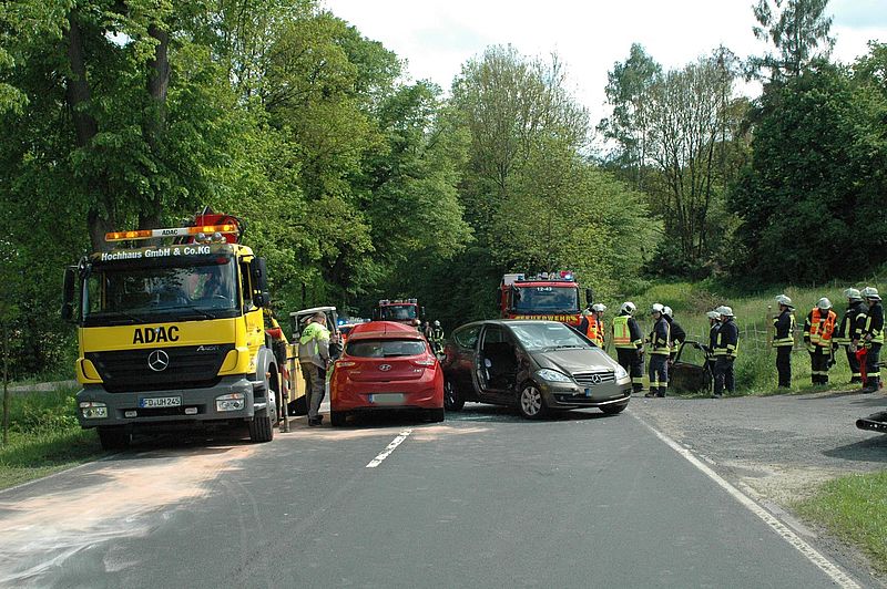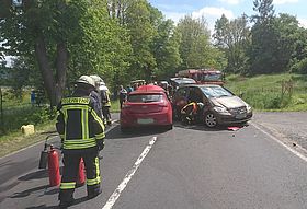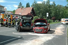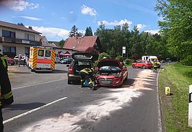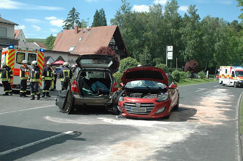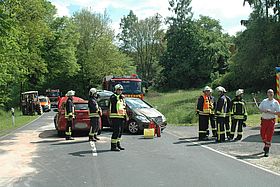 Ein PKW besetzt mit zwei Personen, aus Schlitz kommend, wollte auf den Parkplatz von der ehemaligen Gaststätte Valta "Zur Ranch"einbiegen. Im gleichen Moment kam ein Fahrzeug (mit vier Insassen) aus Richtung Queck. Dieses touchierte das entgegenkommende Auto an der Seite. Dabei wurde eine Person in dem touchiertem Fahrzeug eingeschlossen. Die Tür musste von den Einsatzkräften der Schlitzer Wehr geöffnet werden. Des Weiteren übernahmen die Einsatzkräfte die Betreuung der übrigen Verletzten, und später die Säuberung der Straße.